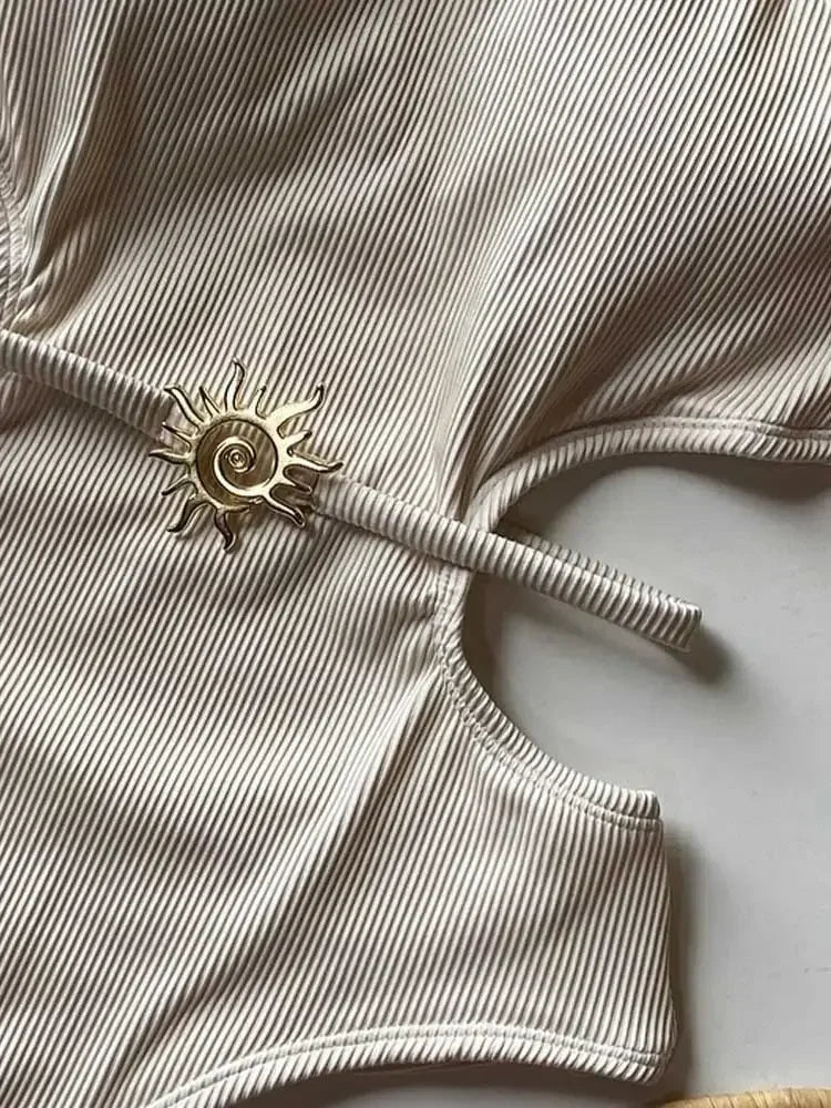 בגד ים בגזרת שלם עם כתפיות דקות, בגזרה צמודה ומחמיאה לגוף ובצבעים קלאהיים ואלגנטים שאף פעם לא נמאהים. בשילוב צ'ארן שמש קדמי ×œ×”×§×¤×¦×Ŗ הלוק.Ā