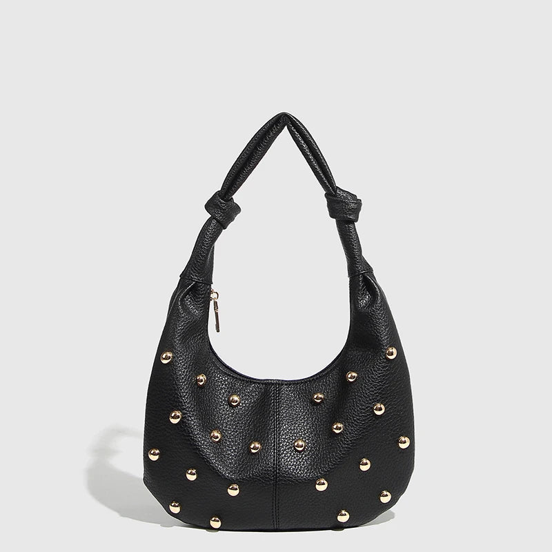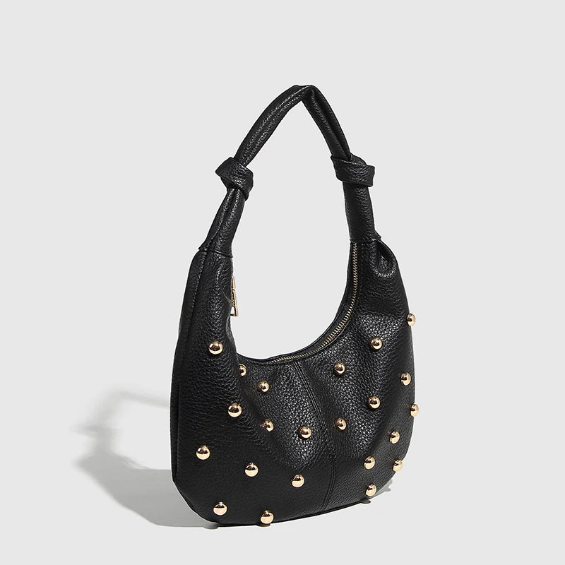 תיק צד עשוי מעור רך ואיכותי בשילוב ניטים מעוגלים עם תא בסגירת רוכסן, התיק המושלם לערב ויום יום.