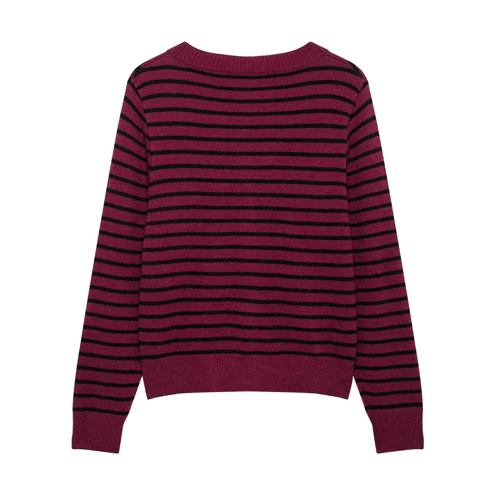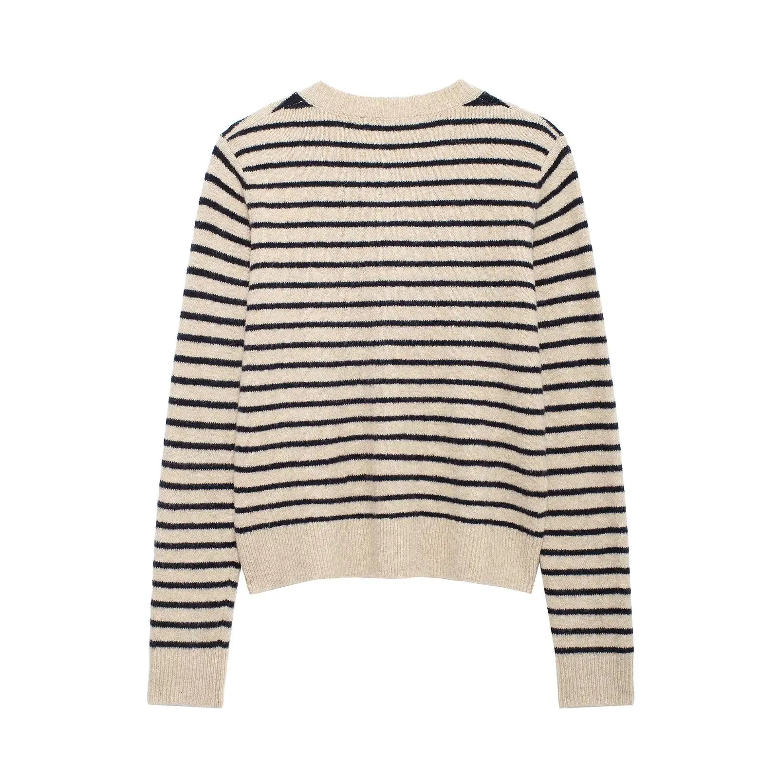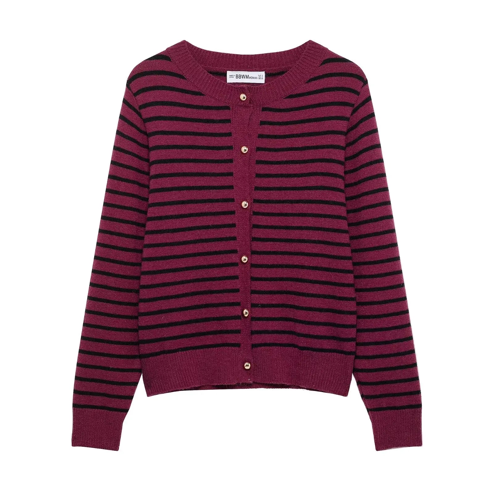 קארדיגן מבד עשוי תערובת צמר מחממת וקלילה על הגוף, בשילוב כפתורים קדמיים והדפס פסים קלאסי ואלגנטי בשני גוונים מושלמים לעונה הקרובה.