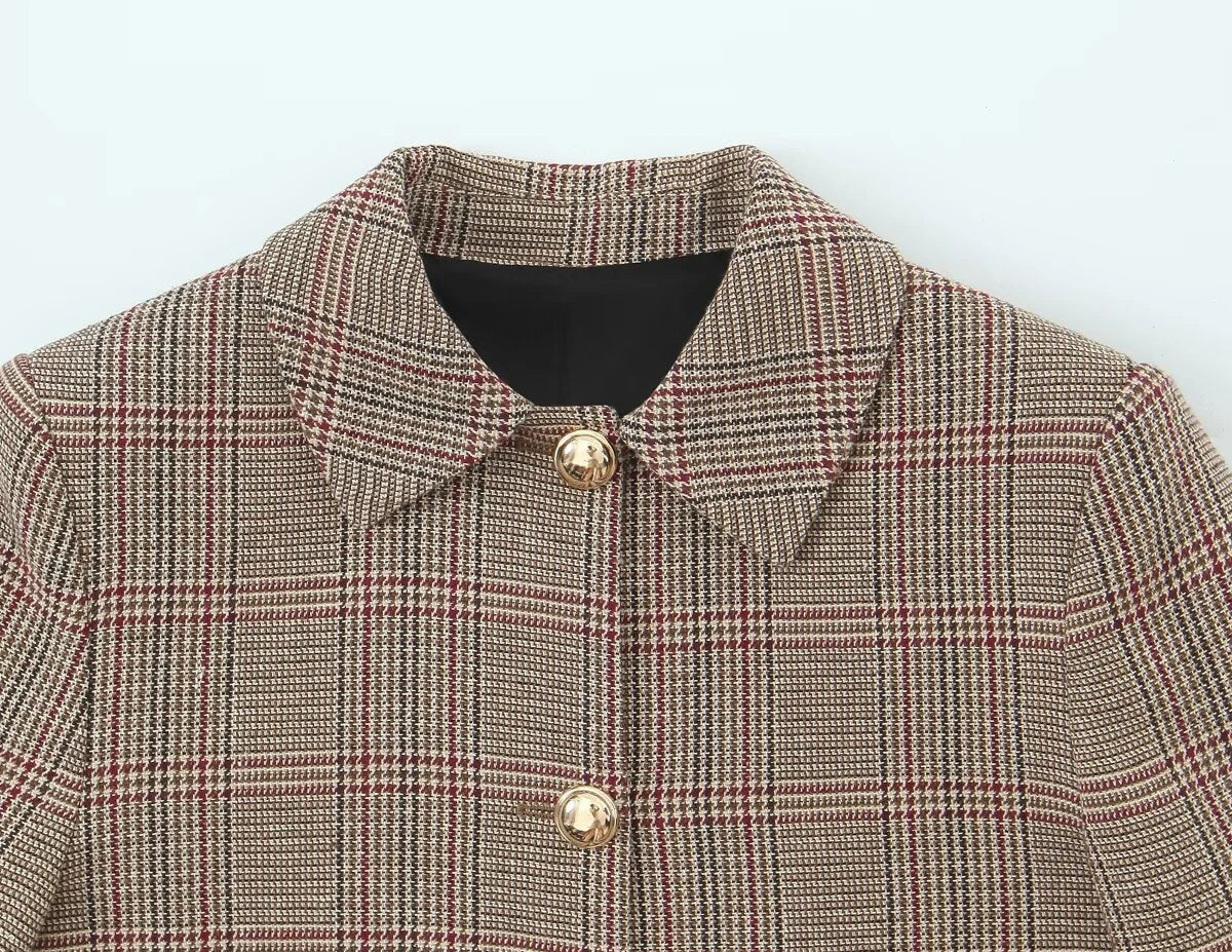 חליפה מחוייטת וקלאסית לחורף עם הדפס חורפי מושלם לעונה, לחליפה ג'קט בגזרה קצרה בשילוב צווארון קלאסי מחוייט וכפתורים מוזהבים מקדימה, בשילוב מכנסיים מחוייטות בגזרה מתרחבת עם חגורה. ניתן לרכוש בנפרד או כחליפה.