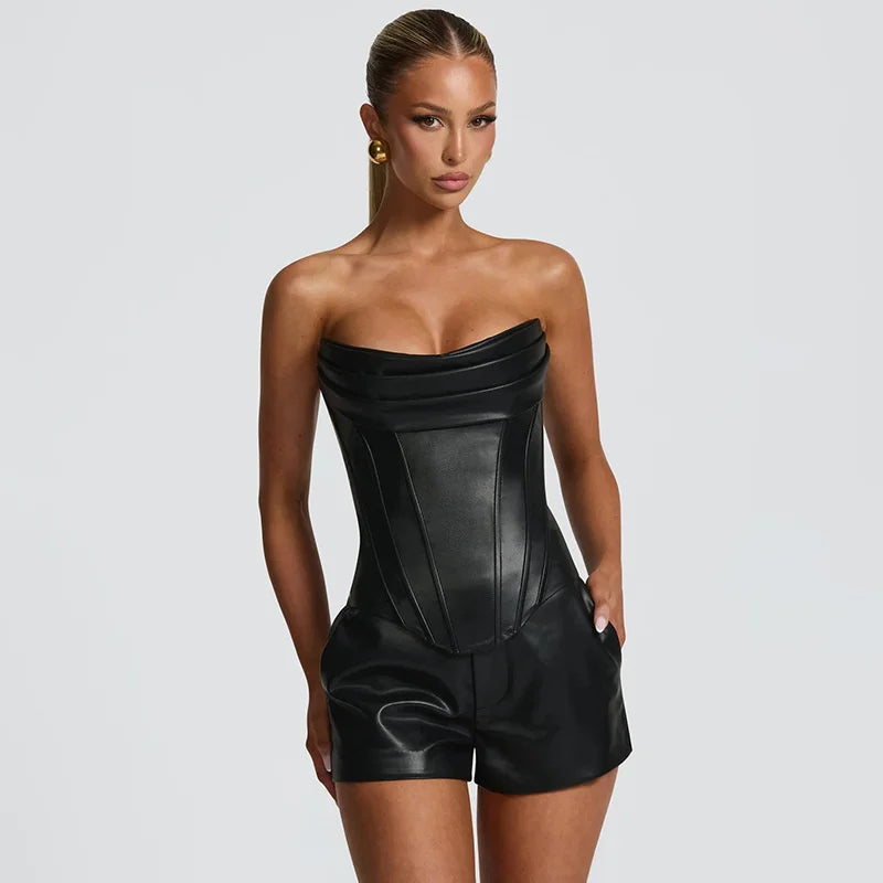 מחוך סטרפלס בגזרה צמודה ומחטבת, עם כפלים פנימיים וסגירת קשירה אחורית, במראה אלגנטי ויוקרתי, הטופ שהולך להקפיץ לך את הלוק שלך בערב- לכל עונות השנה.