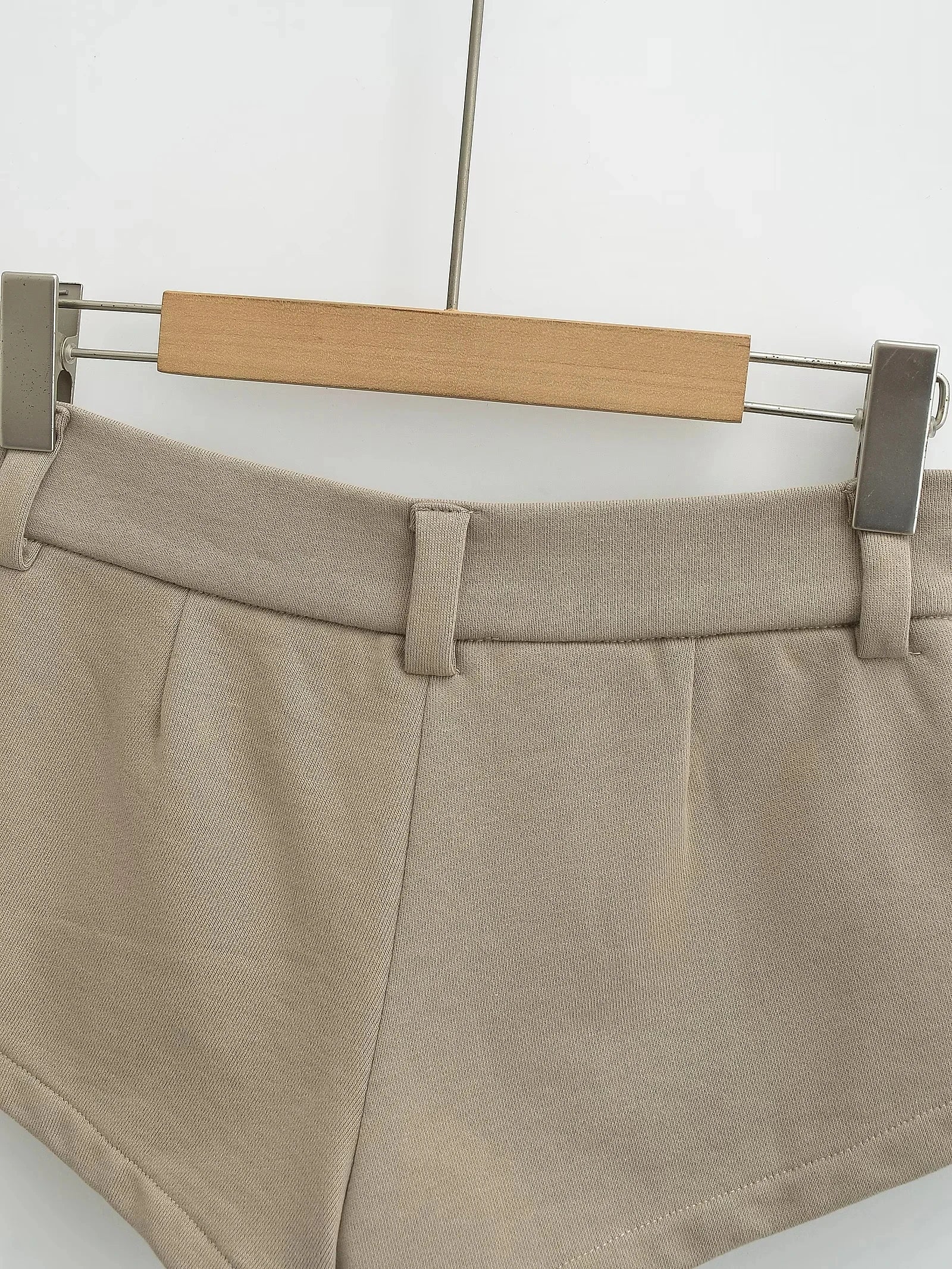 מכנסי שורטס בגזרה קצרה ובמראה קלאסי, בשילוב מראה מעט מחוייט וקלאסי ועם מקום לחגורה.