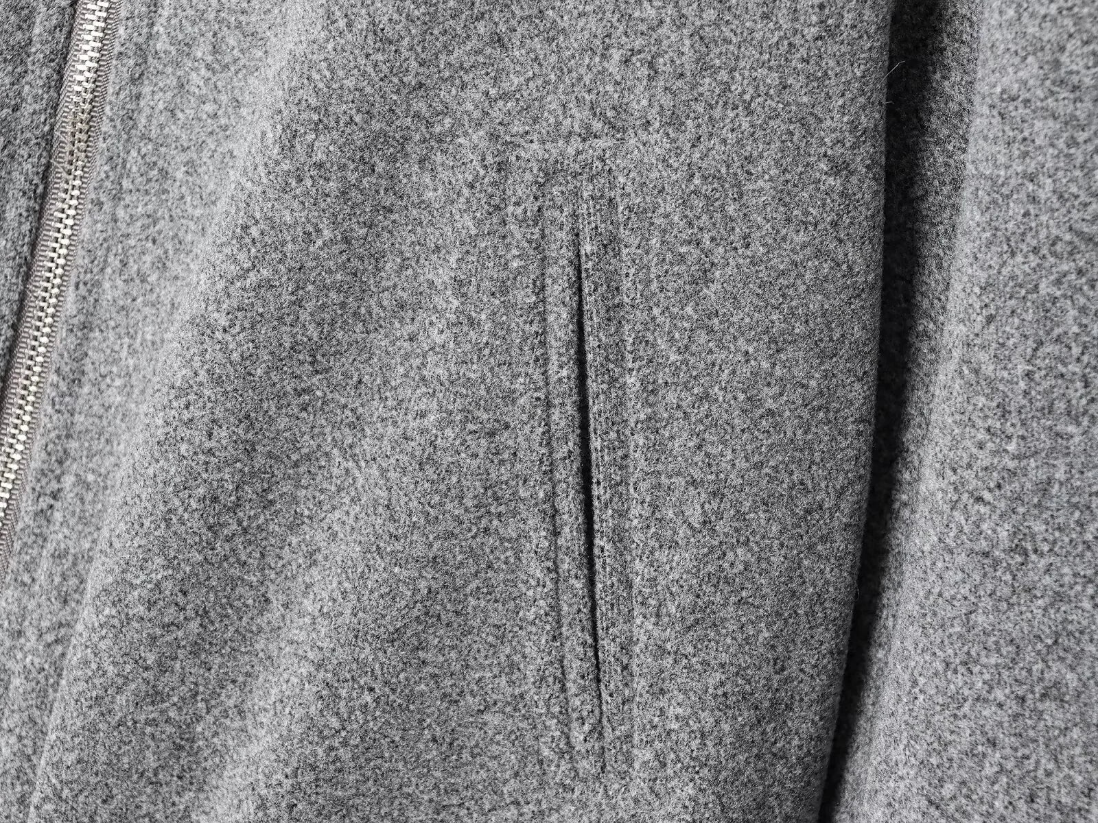 ג'קט קלאסי מתערובת צמר עם סיבי ספנדקס, בשילוב צווארון עגול וקלאסי ושרוולים ארוכים מתרחבים, בסגירת רוכסן קדמי וכיסים בצידי הג'קט.