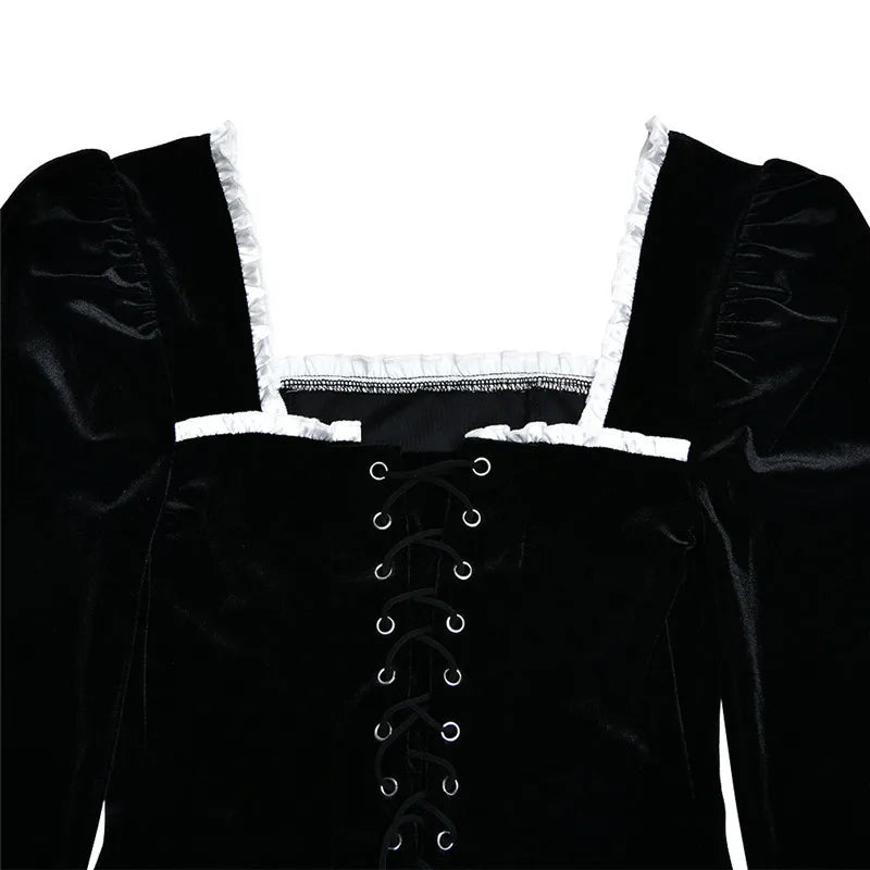 טופ מחוך מבד קטיפה איכותי ויוקרתי, המשלב שרוולים ארוכים עם כריות למראה מחוייט וקלאסי, בשילוב מפתח מרוב וקשירה אחורית להשלמת הלוק המחטב והאוסף.