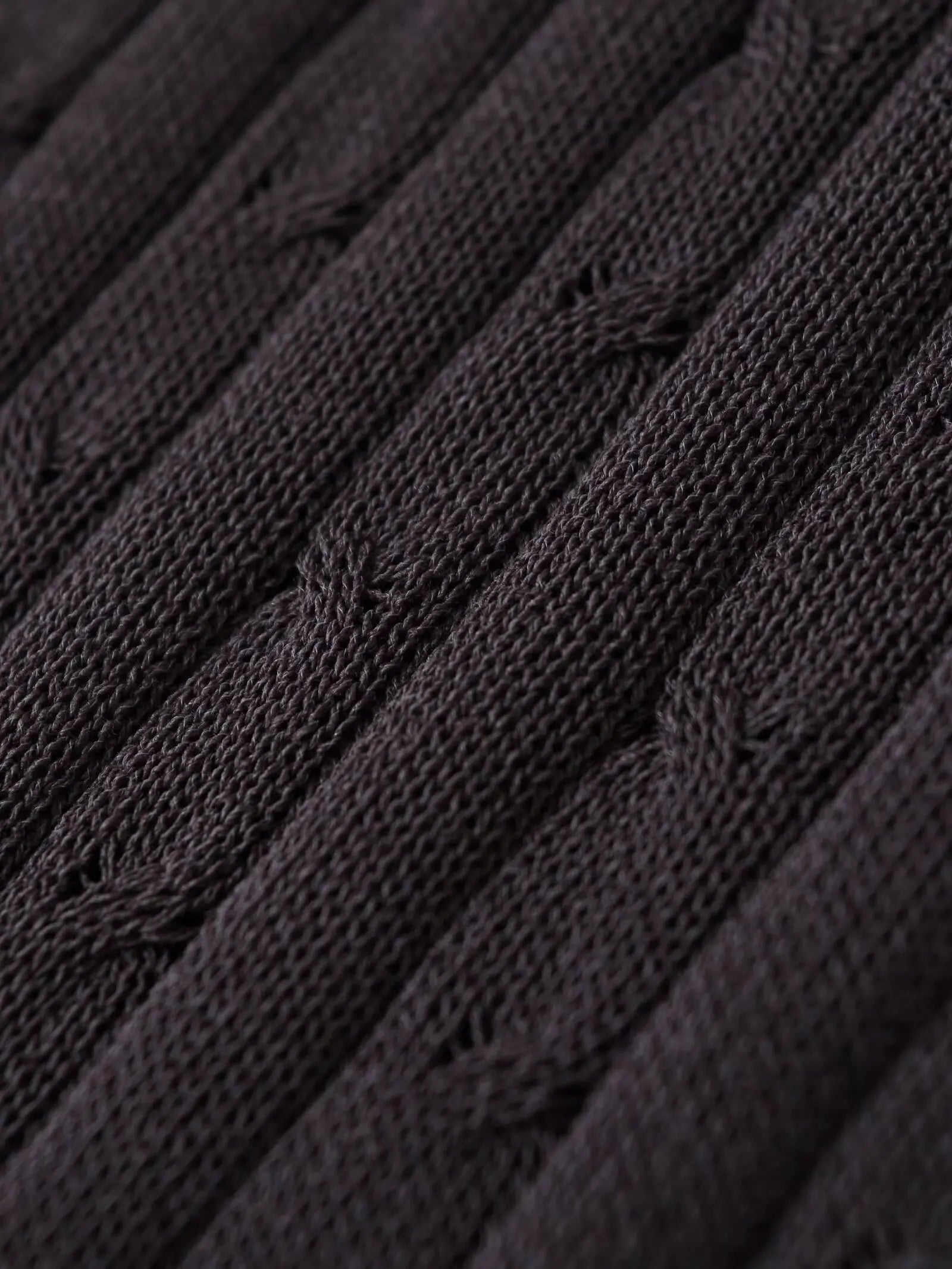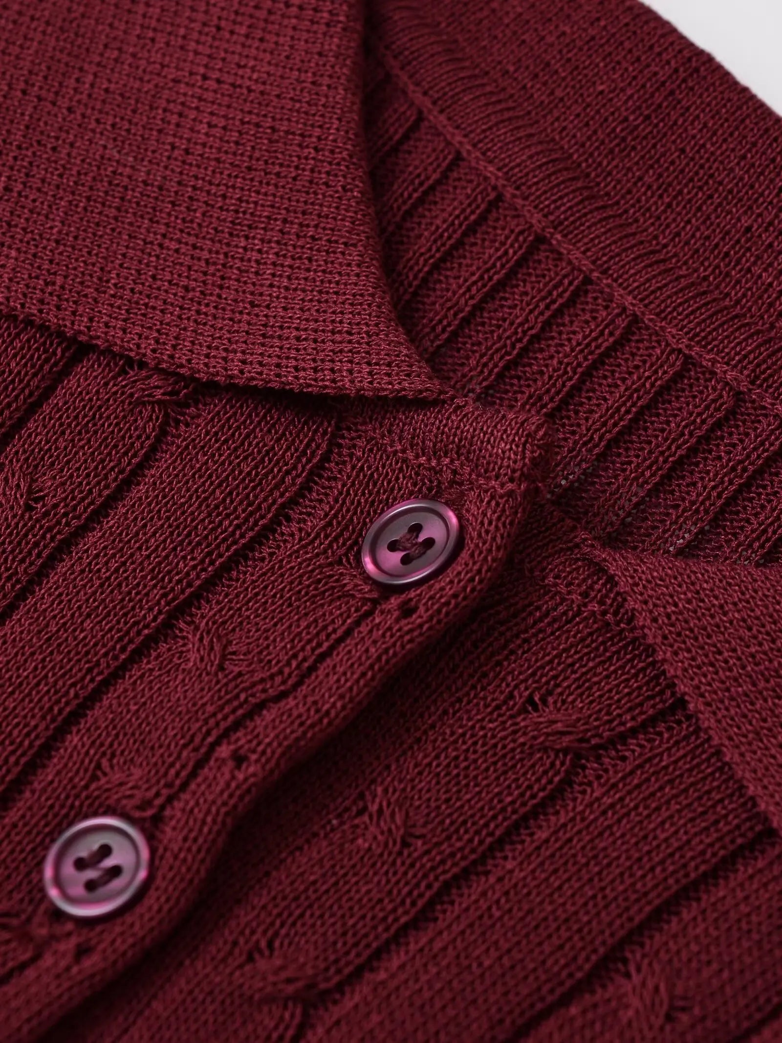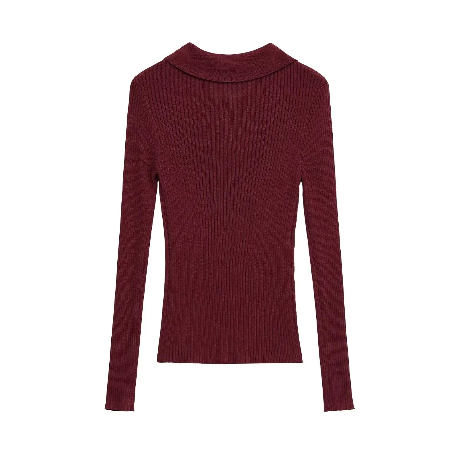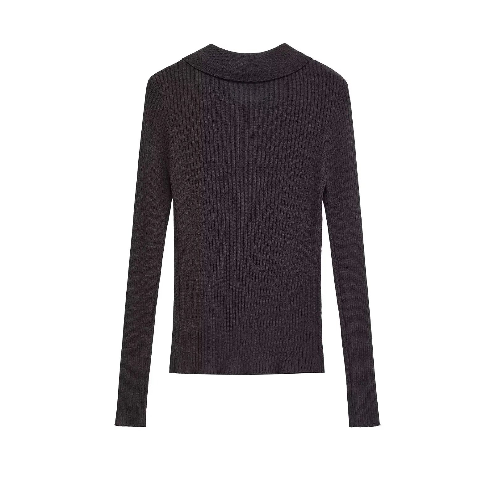 חולצת סריג בגזרה קלאסית, עשויה מבד בשילוב תערובת צמר וסיבי ספנדקס, עם צווארון פולו ובשילוב כפתורים קדמיים.