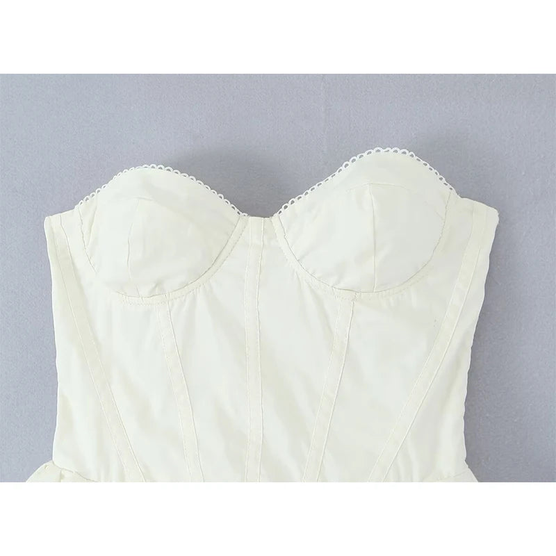 שמלת מיני בגזרת סטרפלס בשילוב מחוך במראה מחויט ומחטב בצורה מושלמת עם קשירה אחורית בגב למראה אלגנטי וקלאסי שכובש במבט. השמלה עשויה מבד פוליאסטר בשילוב סיבי ספנדקס ומתאימה לכל אירוע וחופשה.