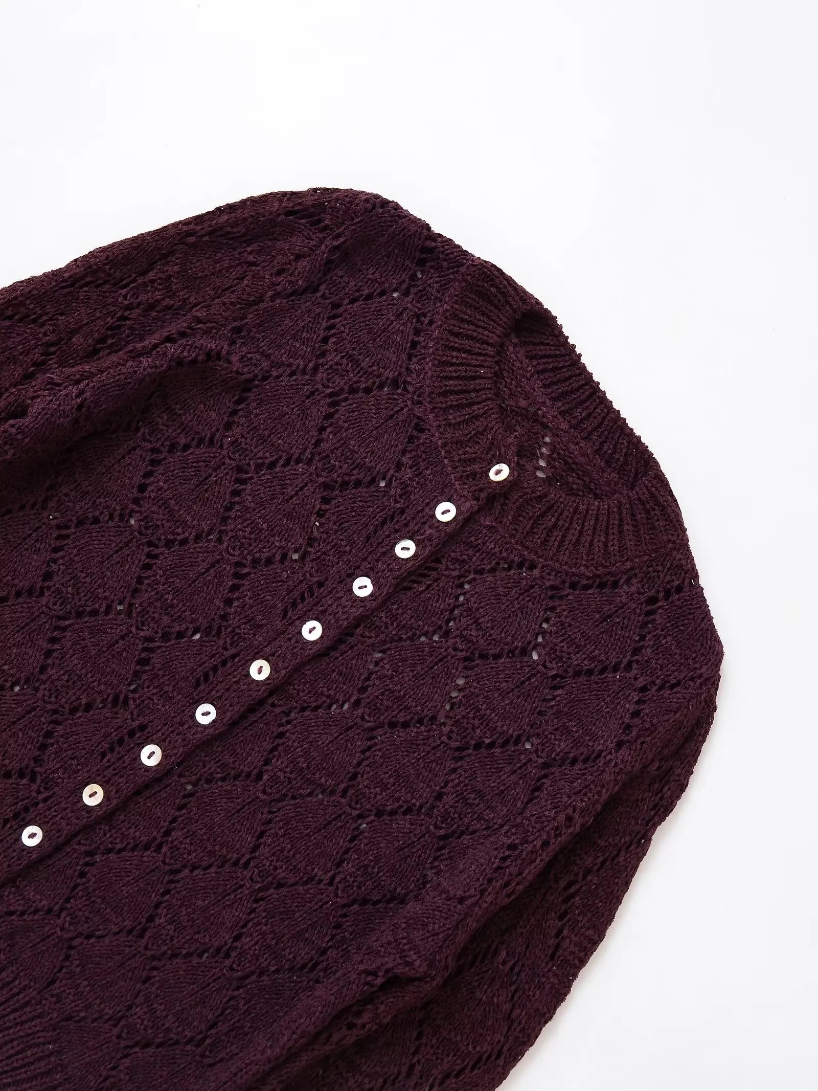 קארדיגן מבד עשוי תערובת צמר מחממת וקלילה על הגוף, במראה סרוג ובשילוב צווארון עגול קלאסי וכפתורים סגירה קטנים מקדימה.