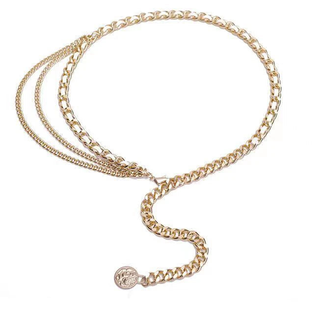 חגורת תכשיט להקפצת הלוק להכי יוקרתי. המשלבת חוליות מוזהבות בשילוב שרשראות חוליות נופלות.