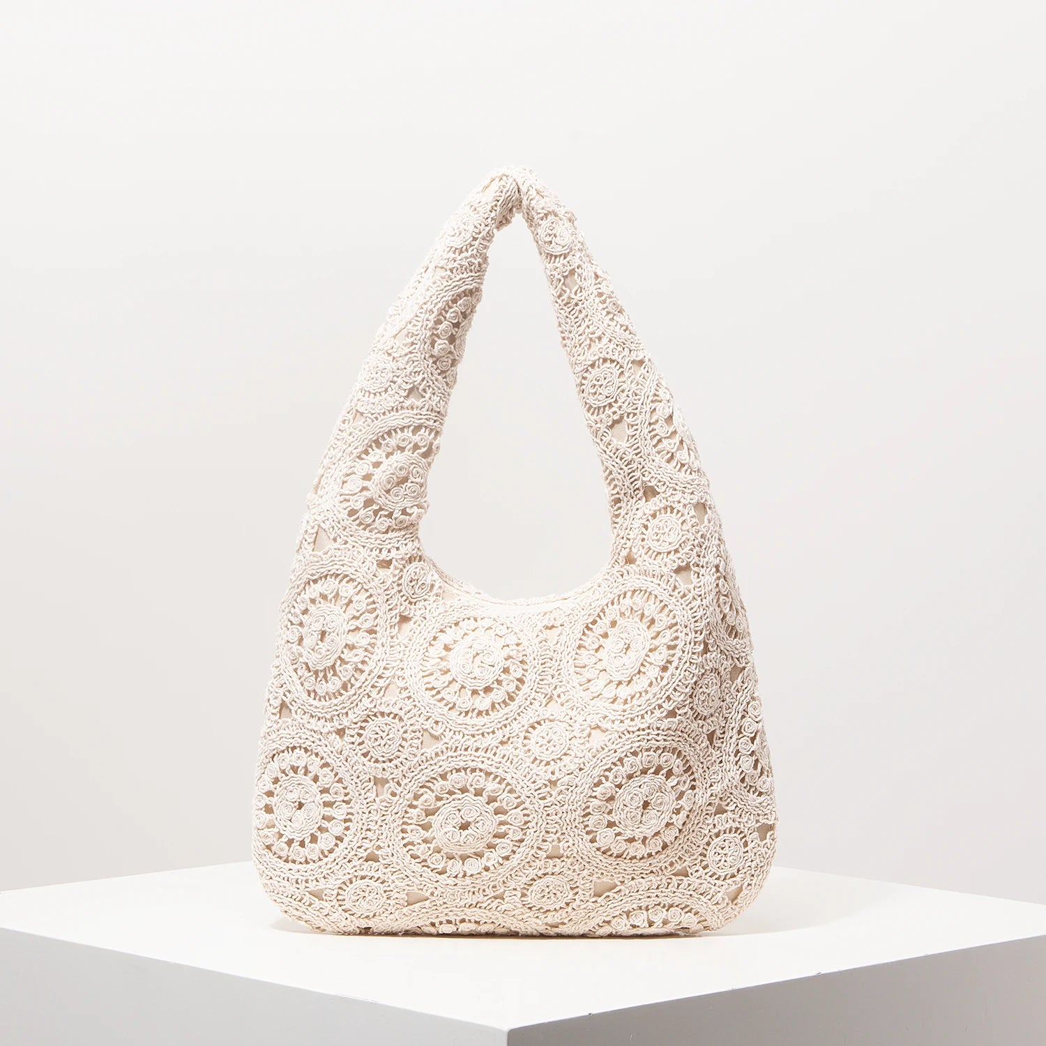 תיק יד ארוג עשוי מבד כפול בשילוב תחרה ובד פנימי המספק שכבה נוספת ששומרת על התיק, התיק עם תא גדול בסגירת רוכסן וידית ארוכה לתליית כתף, הופך כל לוק קיצי לוואו.