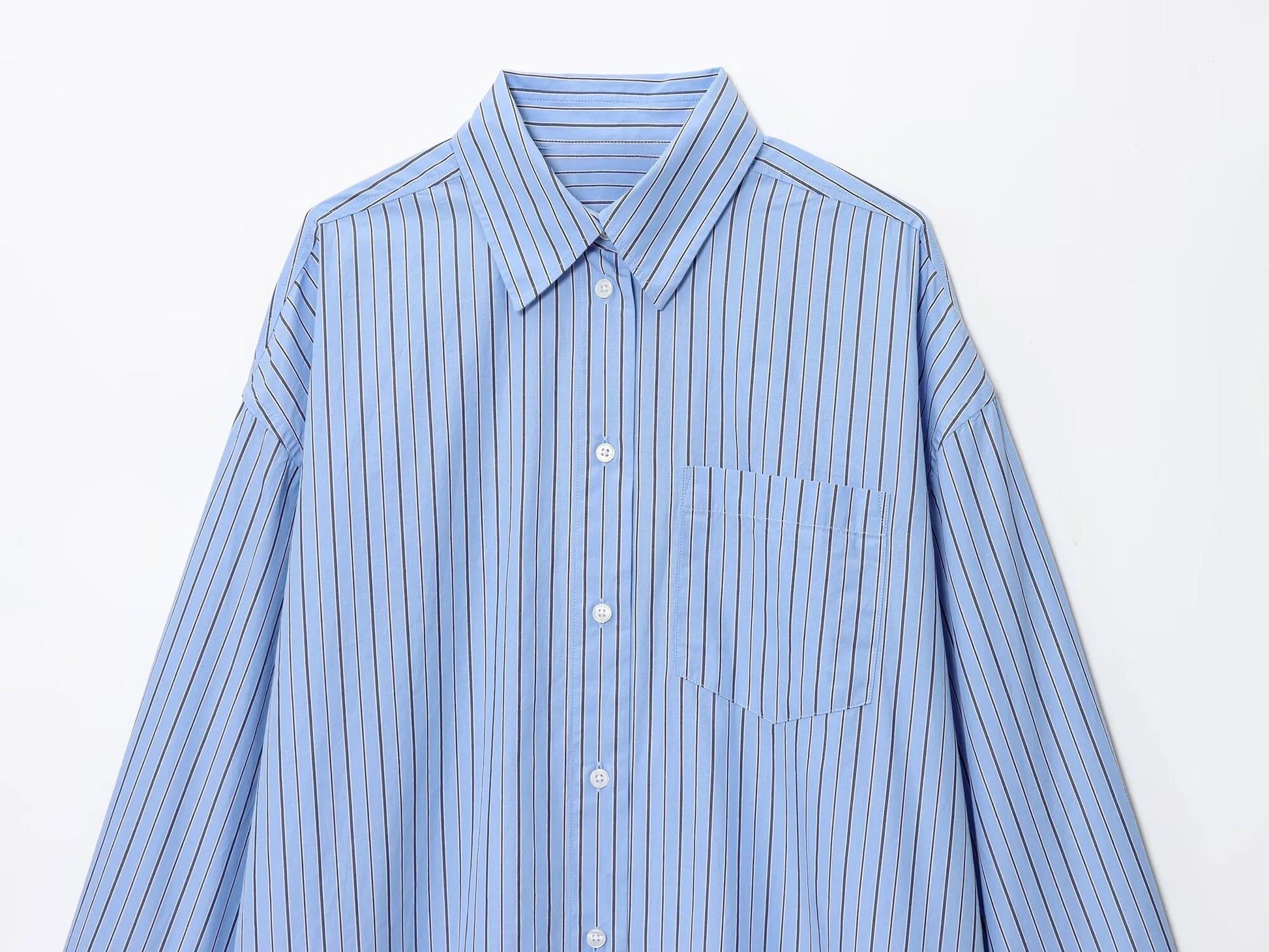 חולצה מכופתרת במראה קלאסי עם צווארון מחוייט בשילוב הדפס פסים שחורים על גבי החולצה.