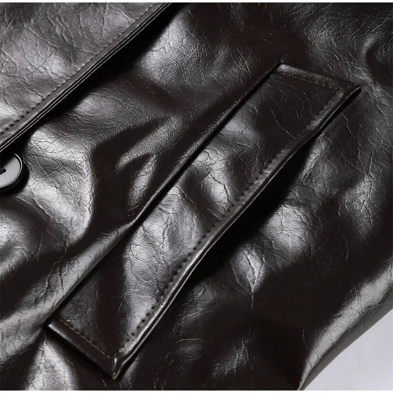 ג'קט גשם אוברסייז באפקט עור זוהר וסופר איכותי, בגזרה מחויטטת מעט ארוכה בשילוב כפתורים איכותיים וצווארון דש, עם חגורת קשירה וכיסים צדדיים.